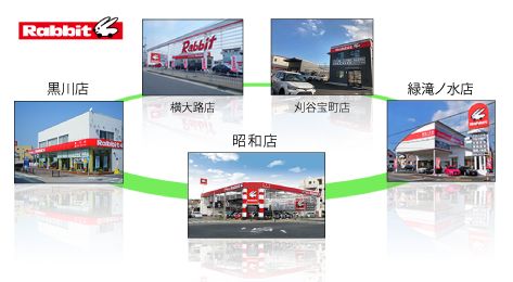 ・ラビット昭和店 ・ラビット黒川店 ・ラビット緑滝ノ水店 ・ラビット刈谷宝町店 ・ラビット横大路店