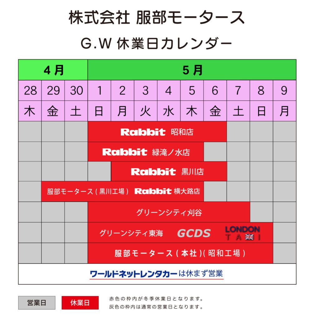 平素より、服部モータースをご愛顧頂きまして、 誠にありがとうございます。 誠に勝手ながら、以下の日程をゴールデンウィークの休業日とさせて頂きます。